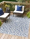 Unique Loom Outdoor Safari Collection Area Rug – Leopard (10′ x 13′ 1″ Rectangle Blue/Gray)