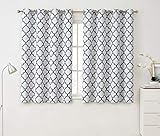 HLC.ME Lattice Print Decorative Curtains Blackout 54 Length – Thermal Insulated Room Darkening Grommet Window Drapes Panels for Basement Windows – Platinum White & Navy Blue – Set of 2-52 x 54 Inch