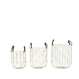 CosmoLiving by Cosmopolitan Metal Decorative and Functional Storage Basket Basket Organizer with Faux Leather Handles, Set of 3 Basket for Storage 16″, 14″, 12″H, Gold