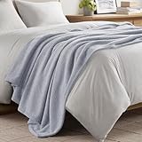 Madison Park Fuzzy Knit Blanket Dream Soft Blanket Cozy Breathable Cover Luxrurious Feathersoft Feel, All Seasons Lightweight Bedding for Summer Cover for Bed, Couch & Sofa, Twin, Grey