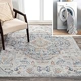JONATHAN Y WSH320C-3 Shaemus Bohemian Medallion Low-Pile Machine-Washable Area Rug, Bohemian, Classic, Coastal, Traditional for Living Room, Dining Room, Bedroom, Kitchen, Cream/Blue/Terra, 3 X 5