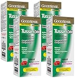 GoodSense Tussin Cough Syrup DM, Cough and Chest Congestion Relief, Raspberry Flavor, 8 Fl Oz (Pack of 4)