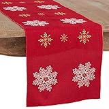Saro Lifestyle Embroidered Snowflake Design Table Runner, Red, 16″x72″
