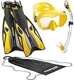 Rapido Boutique Collection Italian Design Premium Tempered Glass Lens Anti-Fog Panoramic View Frameless Snorkel Mask, Elite Dry Snorkel Tube, Quick Adjust Fins – Mask Fin Snorkel Set