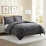 Hearth & Harbor Premium Flannel Duvet Cover Set – 3 PC Reversible Full Comforter Cover Set with Microfiber Back – 1 Velvet Duvet Cover Full & 2 Pillow Shams 80 x 90 inches – Charcoal Gray