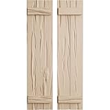 Ekena Millwork 11″W x 48″H Rustic Two Board Joined Board-n-Batten Riverwood Faux Wood Shutters (Per Pair), Primed Tan