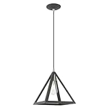 Livex Lighting 41329-76 Geometric Shade – 13.88″ One Light Mini Pendant, Scandinavian Gray Finish with Scandinavian Gray Metal Shade