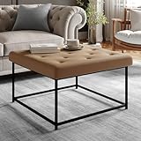 Flash Furniture Ashton 30″ Square LeatherSoft Ottoman, Tufted Design, Sturdy Black Metal Frame, Adjustable Floor Glides, Versatile Use, Light Brown