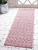 Unique Loom Outdoor Trellis Collection Area Rug – Tribal Trellis (2′ 7″ x 10′ Runner Rust Red/Ivory)