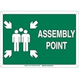 Brady 139577 Fiberglass “Assembly Point” Sign, Text and Symbol, 10″ H x 14″ W, White on Green
