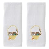 SKL Home Easter Egg Cat Hand Towel 2pc Set for Bath/Kitchen/Bar & Gift, White