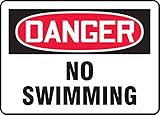 Accuform MADM027VA Aluminum Safety Sign, Legend “Danger NO Swimming”, 10″ Length x 14″ Width, Red/Black on White