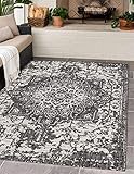 Unique Loom Jill Zarin Outdoor Collection Area Rug – Dubai (7′ 1” x 10′ Rectangle, Charcoal Gray/ Ivory)