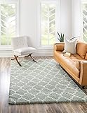 Unique Loom Rabat Shag Collection Area Rug – Marble (9′ x 12′ Rectangle, White Cyan/ Ivory)