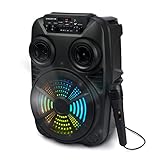 Singsation Karaoke Machine, 8″ Dynamic Driver Loudsound Speaker, Portable 5.0 Bluetooth Speaker with Microphone, Remote, Light Show, Bass Boost, USB and Micro SD, AUX and FM for Party