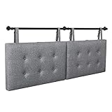 HAUSOURCE Wall Mount Headboard with USB Port for Queen Size Bed Only, Headboards with Adjustable Fabric Straps, Hanging Linen Fabric Padded Headboard for Bedroom