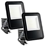 Simple Deluxe 2 Pack LED Flood Lights Outdoor, 70W 7000LM Super Bright Outside Work Light with Plug, IP65 Waterproof, 6500K Floodlight for Garage, Yard, Lawn