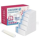 InfiniPower Vacuum Storage Bags 25 Pack, Space Saver Bags with Hand Pump, Vacuum Seal Bags for Clothing Travel, Comforters, Blankets, Bedding, Pillows (5 Jumbo/5 Large/5 Medium/5 Small/5 Roll M)