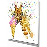 Designart Canvas Art Wall Decor ‘Giraffe Eating Ice Cream’ – Wall Art For Living Room, Wall Art Bedroom, Dining Room Wall Decor, Wall Art- Made Of Wood & Cotton Material – Size 12″ x 20″