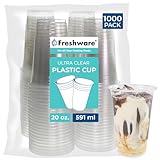 Freshware Plastic Cups [20 oz, 1000-PCS] – Disposable Cold Drink Party Soda Cups, Crystal Clear PET Cups