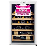 Unique Appliances Classic Retro Electric Wine Cooler, 28-Bottle Wine Fridge with Adjustable Wooden Shelves and Intuitive Digital Control Panel, Single Zone, 21″, Marshmallow White