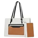 Maelstrom Leather Tote Bag,Laptop Bag for Women,Waterproof Briefcase with Clutch Bag,Large Ladies Shoulder Bag,Work Handbags 15.6 Inch Computer-Beige.