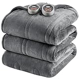 Beautyrest Heated Blanket, Electric Blanket, Soft, Warm, Reversible Plush – Sherpa Heating Blanket with 20 Heat Settings, 1-10 hrs Timer Auto Shut Off, Machine Washable, Queen (90 inx84 in), Grey