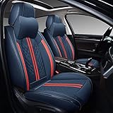 GXT Deluxe Faux Leather Full Coverage Car Seat Cover Anti-Slip Universal Fits for Sedans SUV Pick-up Truck with Headrests,Interior Accessories(Blue and Red Strip)