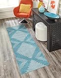 Unique Loom Kai Collection Area Rug – Warrior (2′ 7″ x 10′ Runner Light Blue/Ivory)