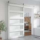 SmartStandard 48 x 84 inch Glass Barn Door with 8FT Brushed Nickel Sliding Hardware Kit & Handle, Pre-Drilled Ready to Assemble, Waterproof PVC Coating, White, 5-Panel Glass