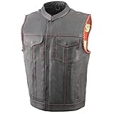 Milwaukee Leather MLM3506 Men’s Black Premium Leather Vest – Old Glory Laced Armholes Red Stitching Club Style Vest – 7X-Large