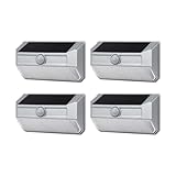 Home Zone Mesh Linkable Series 4-Pack Solar SMD LED Security Wall Pack Light, 800LM, Auto-Linking, 120°x26 ft Motion Detection, 3000K Warm White, Customizable 4-Channel Settings, Silver