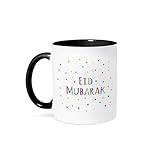 3dRose Eid Mubarak – happy Eid blessing after Ramadan Islamic Muslim holidays 11oz Two-Tone Black Mug