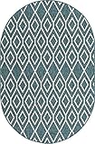 Jill Zarin Outdoor Collection Area Rug – Turks and Caicos (5′ 5″ x 8′ Oval Teal/Ivory)