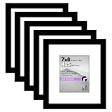 Americanflat 7×8 Picture Frame with Polished Plexiglass – Set of 5 – Use as 4×5 Frame with Mat or 7×8 Frame Without Mat – Galleria Collection – Gallery Frames for Tabletop and Wall Display – Black