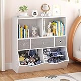 Amyove Kids Bookshelf and Bookcase Toy Storage Multi Shelf with Cubby Organizer Cabinet and Drawers for Boys Girls, for Children’s Room, Playroom, Hallway, Kindergarten, School (White)