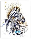 Designart Zebra Family Illustration Watercolor Contemporary Animal Art Canvas, 30×40, Blue