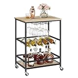 VASAGLE Bar Cart, Serving Cart with Casters, Glass Holders, Wine Holders, 15.7 x 23.6 x 32.3 Inches, Industrial, for Home Bar, Kitchen, Dining Room, Turquoise Brown and Simply Black ULRC087B60