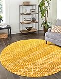 Unique Loom Moroccan Trellis Collection Area Rug – Mamounia (12′ Round Yellow/Ivory)