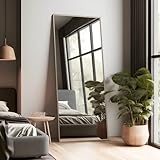 NeuType Full Length Mirror Standing Hanging or Leaning Against Wall, Large Bedroom Mirror Floor Mirror Dressing Mirror Wall-Mounted Mirror, Aluminum Alloy Thin Frame, Matte Champagne Color, 65″x22″
