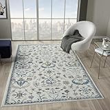 LR Home Indoor 8×10 Area Rugs for Home Decor | Turkish Rugs for Living Room, Bedroom, playroom, entryway, Office | Floral Modern Farmhouse Boho Area Rug for Room Decor | Ivory Blue