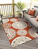 Unique Loom Outdoor Modern Collection Area Rug – Circles (7′ 10″ x 11′ Rectangle Terracotta/Burgundy)