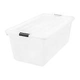 IRIS USA 91 Qt Stackable Plastic Storage Bins with Lids, 1 Pack – BPA-Free, See-Through Organizing Solution, Latches, Durable Nestable Containers, Secure Pull Handle, Made in USA – Clear