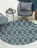Unique Loom Outdoor Trellis Collection Area Rug – Gitter (10′ Round, Teal/ Ivory)