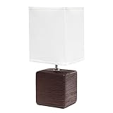 Simple Designs Petite Faux LT2072-BWN Stone Table Lamp with Fabric Shade, Brown with White Shade