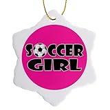 3dRose Soccer Girl Black and Hot Pink – Snowflake Ornament, Porcelain, 3-Inch (ORN_181849_1)