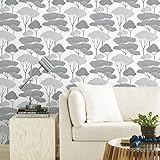 RoomMates RMK12062WP Umbrella Pines Peel and Stick Wallpaper, Grey