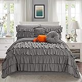 Elegant Comfort 10-Piece Bed-in-a-Bag, Multi-Ruffle Comforter Set, Includes Bed Sheet with Double Sided Storage Pockets & Decorative Pillows, Multi-Ruffle Comforter, Twin XL, Gray