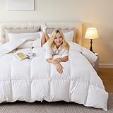 Wellos Luxury King Size Feather Down Comforter, High Fill Power Fluffy Duvet Insert, 100% Cotton Cover Skin-Friendly, Medium Weight for All Season Bedding with Corner Tabs, (106 x 90 White)