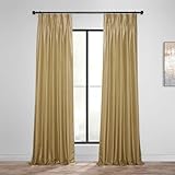 HPD Half Price Drapes Blackout Curtains for Bedroom Vintage Textured Faux Dupioni Silk French Pleated Curtains for Living Room (1 Panel), 25 X 108, Flax Gold